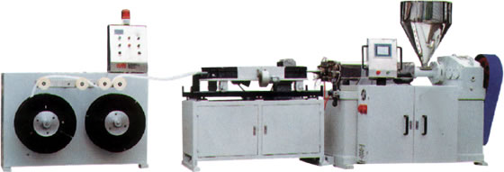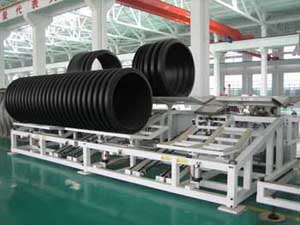 It adopts efficient screw and notched barrel, the inner and outer walls are separately extruded by two extruders, the color and weight of inner wall and outer wall can be adjusted.