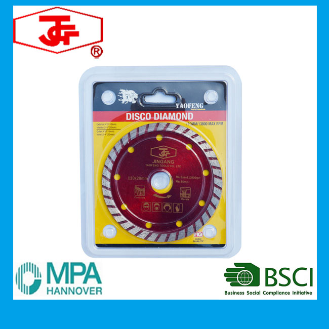 110mm turbo Diamond Saw BladeProduct Description:Application Machine: Hand Tool or Cutting MachineApplication Scope:1. concrete2. reinforced concrete;3. concrete pile;4. paver;5. marble brick6. granit…