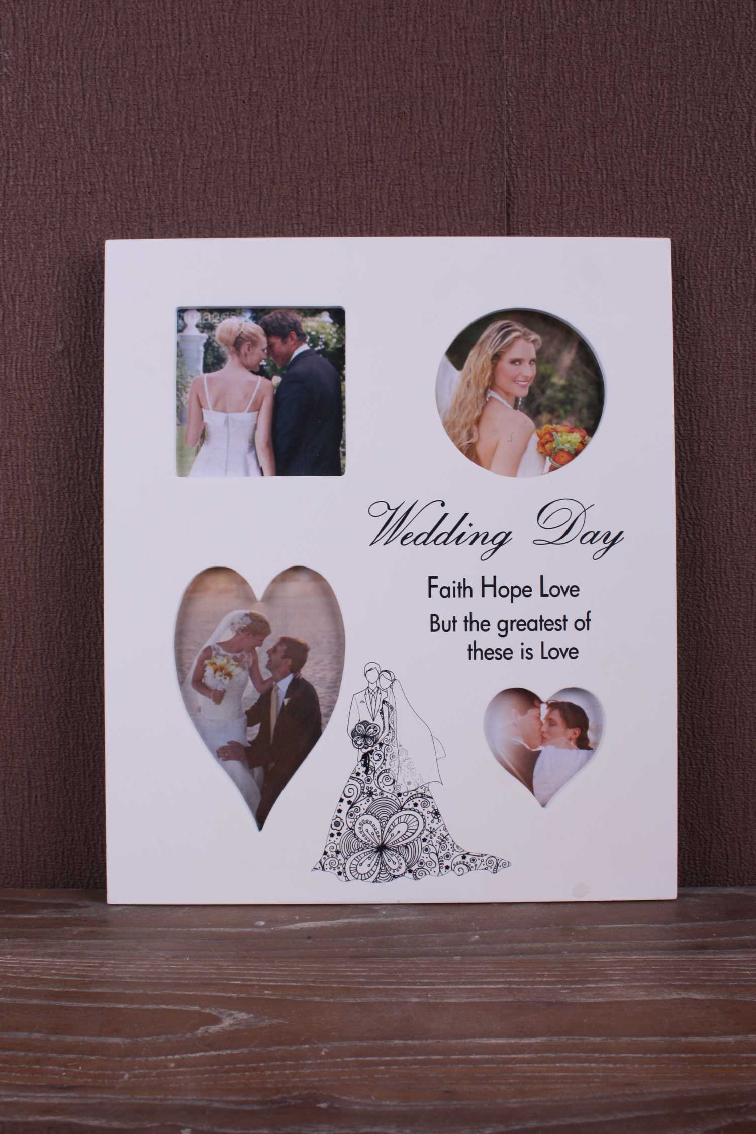 wood "wedding day" frame with imprinted