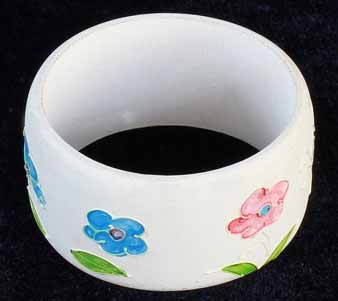 Description: Blue wood bracelet. OD:3.15in, ID:2.63in.
