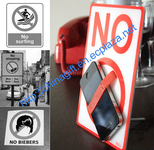 The No-Sign holder is a rectangle-shaped stand measuring at H20.3 x W14cm made of elastic and printed tin. It shows the universal NO sign in big, bold letters set on a white background.Below the sign …
