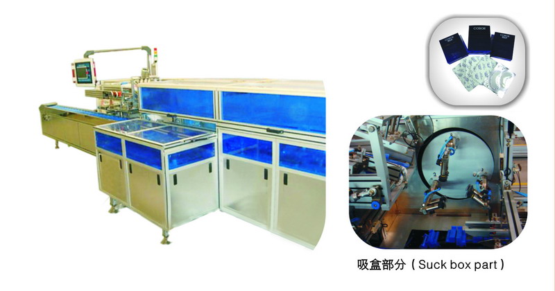LX-100 High-speed Plastic Wrap Boxing Machine is mainly used in automatically filling and sealing box for cylinder shape or massive shap…