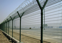 This kinds of fence is new designed style for airport,the welded mesh panel is welded by 5.0mm strong carbon steel wire. The mesh size is 50mmx100mm. The panel has V-beam that can enhance the unti-wal…