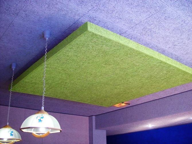 Material: acoustic absorption panel is made of polyester fibres, being hot pressed, with the function of permeability and various density.