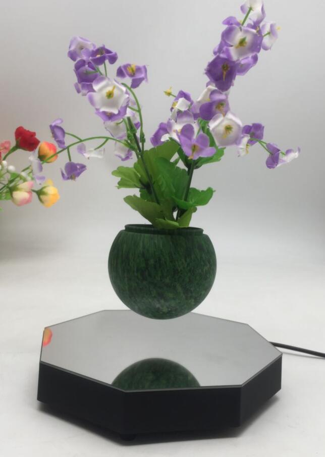Base size: 170*170*25mm Floating object weight: 0-300gram pot color: green,purple pot size:8.5*8.5*8cm floating distance:15-20mm base material:plastic with mirrior AC Adapter:DC Output 12V, 1500mA