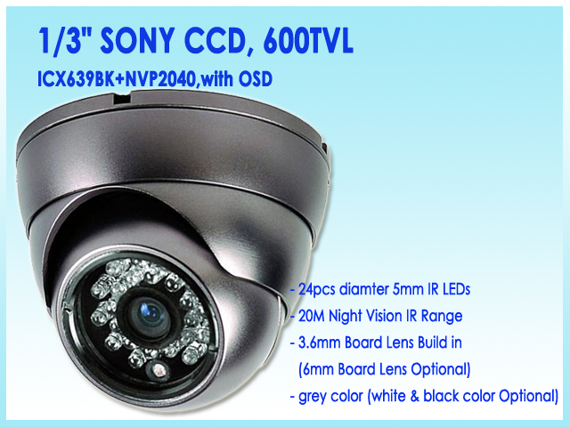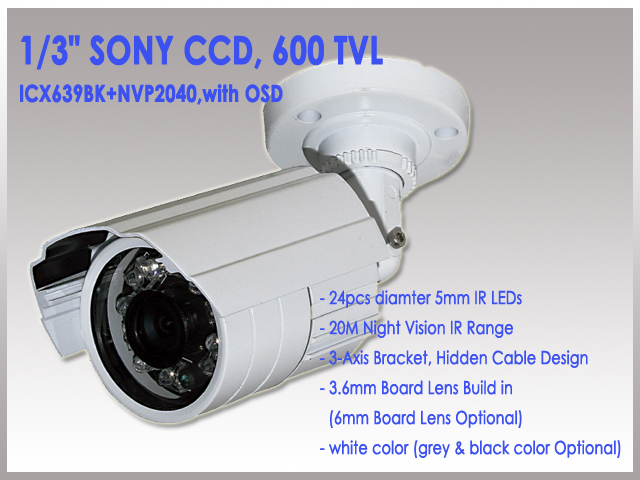 -1/3" SONY CCD, 600TVL (ICX639BK+NVP2040, with OSD)