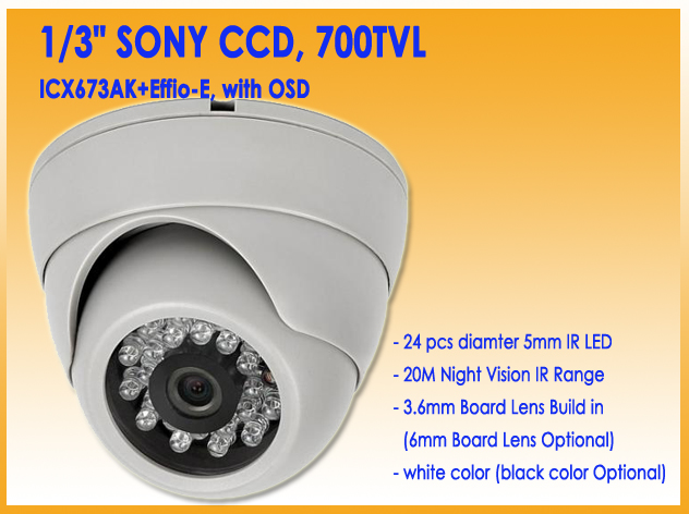 -1/3" SONY CCD, 700TVL (ICX673AK+Effio-E, with OSD)