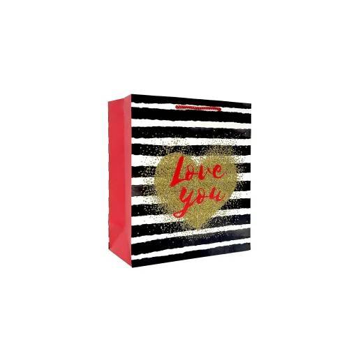 Product Description This Paper Wedding Gift Bags features black and white stripes and golden heart designs as its main elements. The bag is made of white cardstock and the process uses powder spraying…
