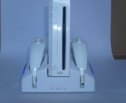 1.2 Wii Remote controllers and 2 Wii Nunchucks. The slots are wide enough to hold a Wii classic controller instead of a Wii Remote.