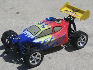 Acme Racing 1/10 scale remote control buggy runs a maximum of 55-65 mph! This 2 speed 4 wheel drive system is ready to run out of box! All you need is nitrogen gas fuel, AA batteries, and glow plug st…