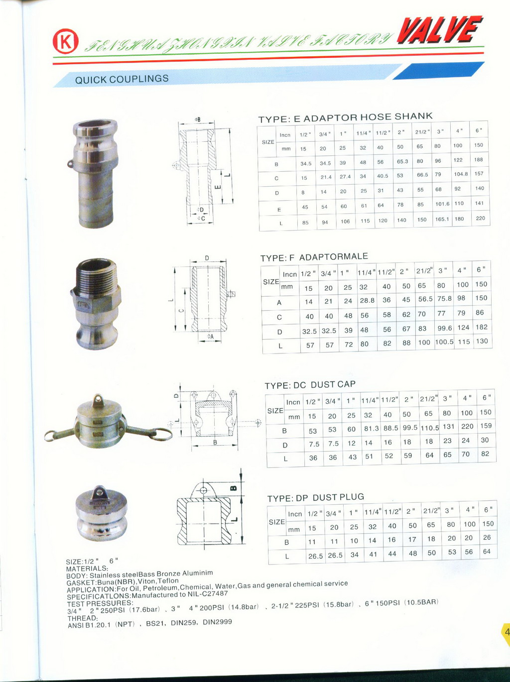 half Coupling without locking ring and male BSP thread,/ femal BSP thread;