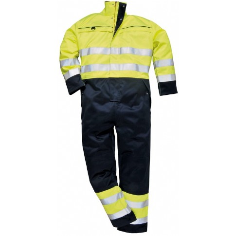 This multi-norm coverall is constructed with a highly innovative high-visibility, flame retardant, multi-norm fabric.