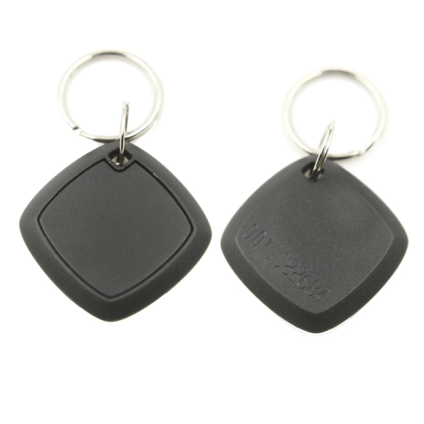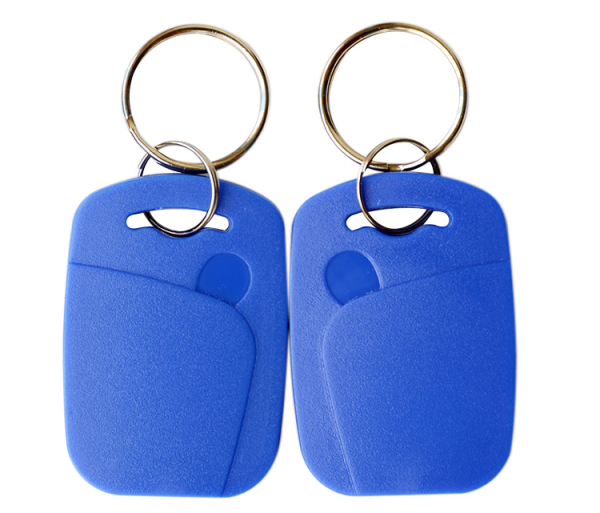 RFID key fob is combined of RFID transponder and ABS house together with two metal rings.