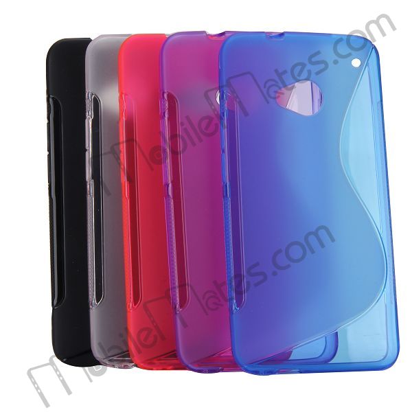 Transparent S Shape TPU Gel Soft Back Cover Case Skin For HTC One M7(Hot Pink)