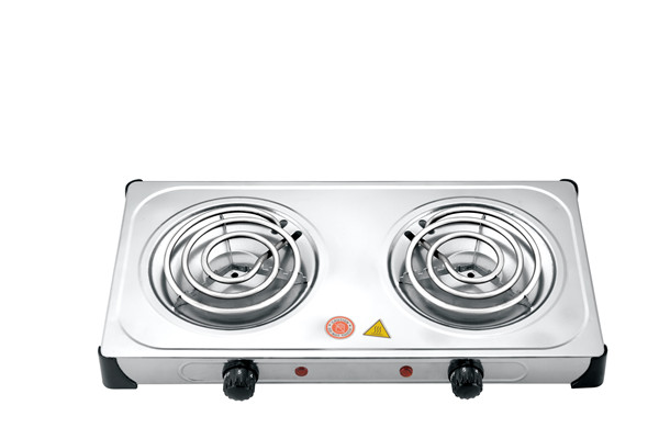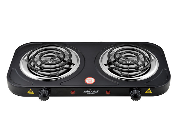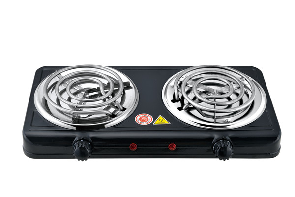 Double coil hot plate iron steel 1000w+1000w with CE ROHS approval Products Specifications: No.WY-05C(Black)Voltage110V/220VPower1000w+1000wFrequency50HZ-60HZHot plate Diameter155mm+155mmMaterialIron …