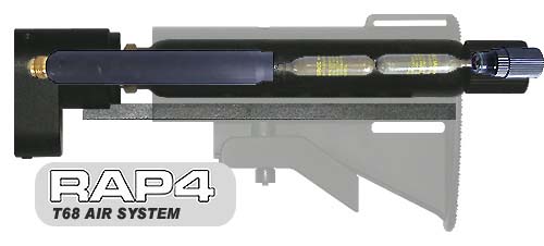 This T68 air option comes with a 12g disposable cylinder adaptor and stock. This configuration also allows you to use 45g disposable cylinders and 60g refillable cylinders as well.