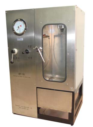 The "canneed ABT-100 Burst Buckling Tester for Aerosol Cans" is used to determine the buckle value of bottom and end (dome) of aerosol cans and the pressure at which the can bursts.