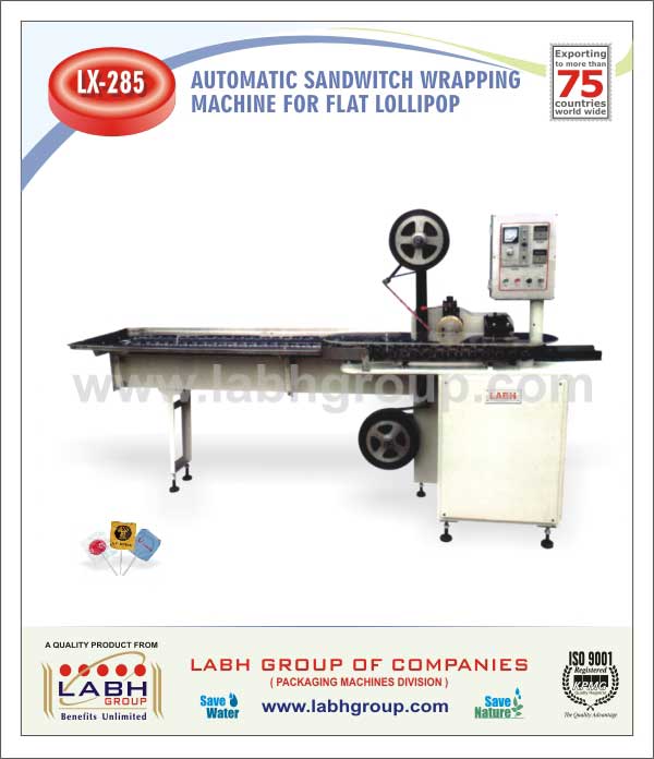 Sandwich wrapping machine to wrap the flat lollipop in sandwich type packing