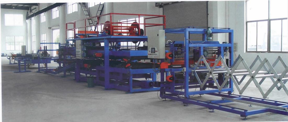 This production line can produce and compound tile panel. The whole line consists of uncoiler, cutting set, - compound system ( ribbon, gelatinizing, heating up, compounding, crimping, notching, edge…