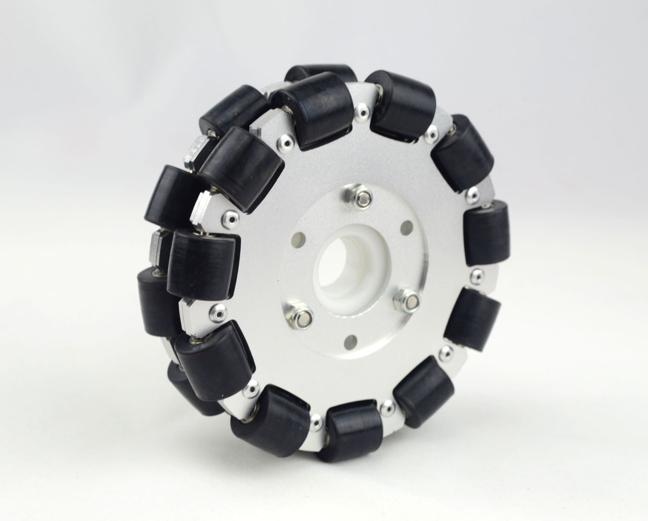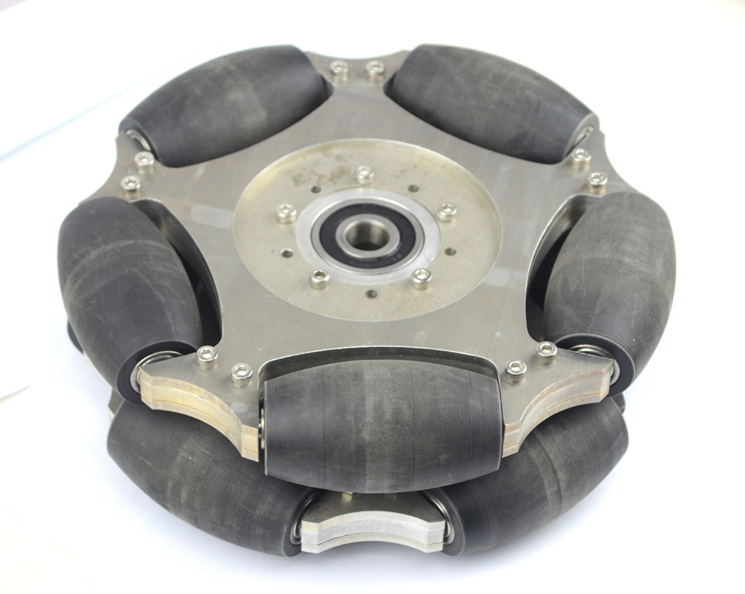 The 100mm double plate plastic omni wheels have some rollers mounted along
