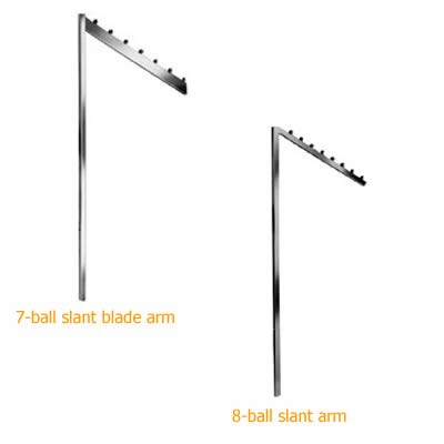 Slant blade arm is for use with K14 and K24. Arm has 7 balls to create an attractive garment display. Upright made of 0.83" square tubing. Blade arm made of 1/…