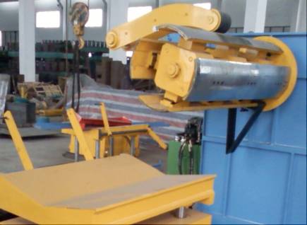 Hydraulic load car weight: 5T Un-coiler weight:5T Width of the coil (Max):1250mm ID :φ508-φ610mm; Material of the axis:40Cr Power:4Kw dimension:3110X1650X1780 mm Hydraulic power:3Kw speed:0-20m/min