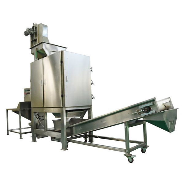 This machine is used for cleaning the dust on the peanut kernel. Peanut kernels go from feeding hopper to cleaning room through conveying belt. During the conveying period, the brush roller will turn …