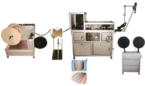 This machine is composed by YO forming main unit, coiling machine, cutting machine, and used on producing YO double-coils of loose leaf binding. It can automatically cut, count, warn and lubricate.