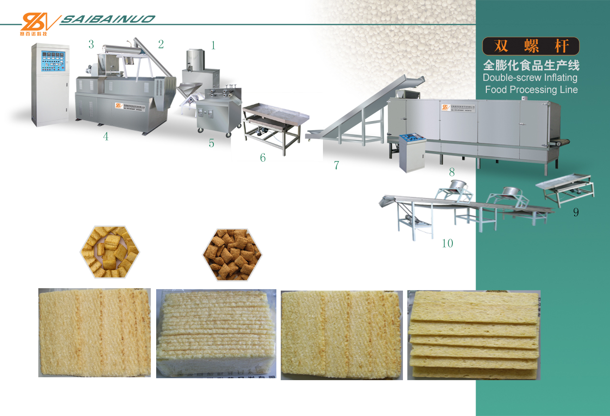 1. Snack processing line can produce all kinds of extrusion products such as snacks,core filling food,crackers,nutritional powder,breakfast cereal,baby food.
