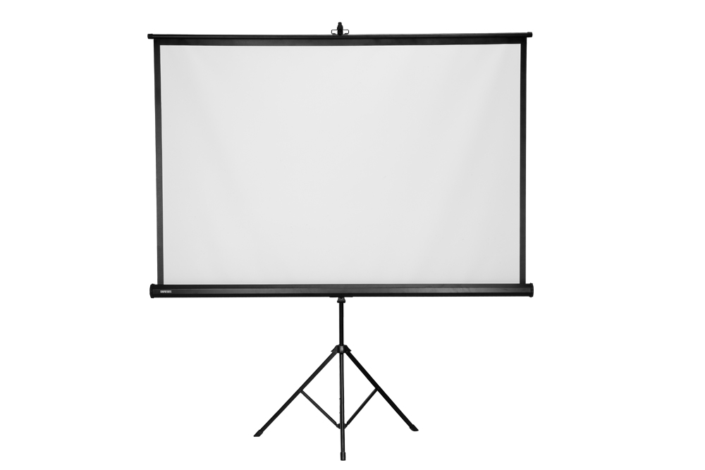 1 The screen's height is adjustable with a particular self-locking system and can be easily made to suit different projectors;