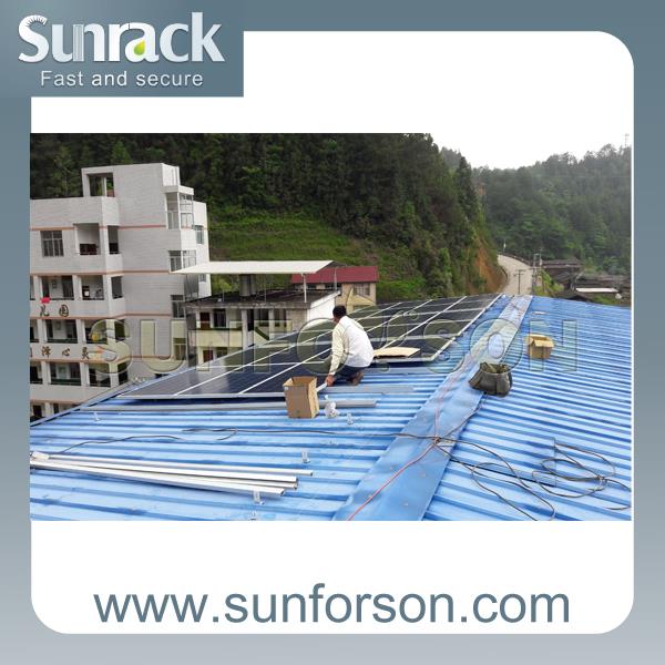 Fast and easy installation solar panel brackets With variaty of tin roof brackets, SunRack tin roof mounting system can meet trapezoid/corrugated metal roof and standing seam roof demand with or witho…