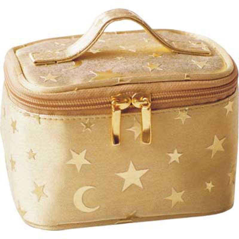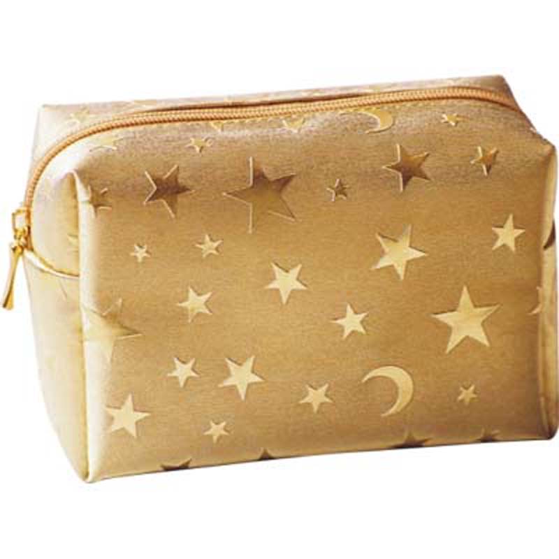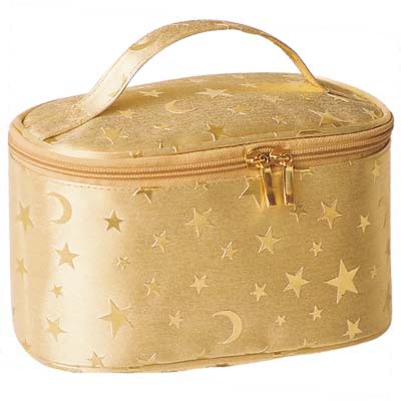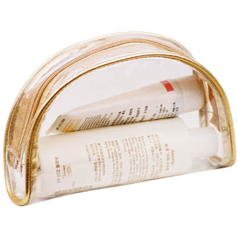 "transparent PVC trimmed with gold PVC leathertop zip closure with a handle promotion for Mother's Day.