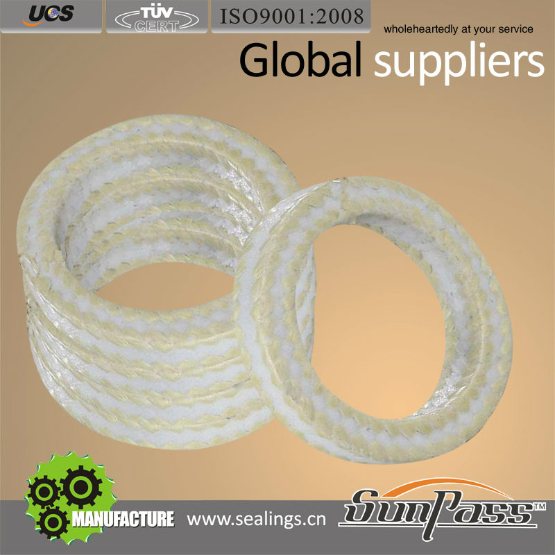 1. PTFE Gland Packing is pure PTFE yarn braided packing incorporated with pure 100% Dupont's Kevlar yarn throughout the