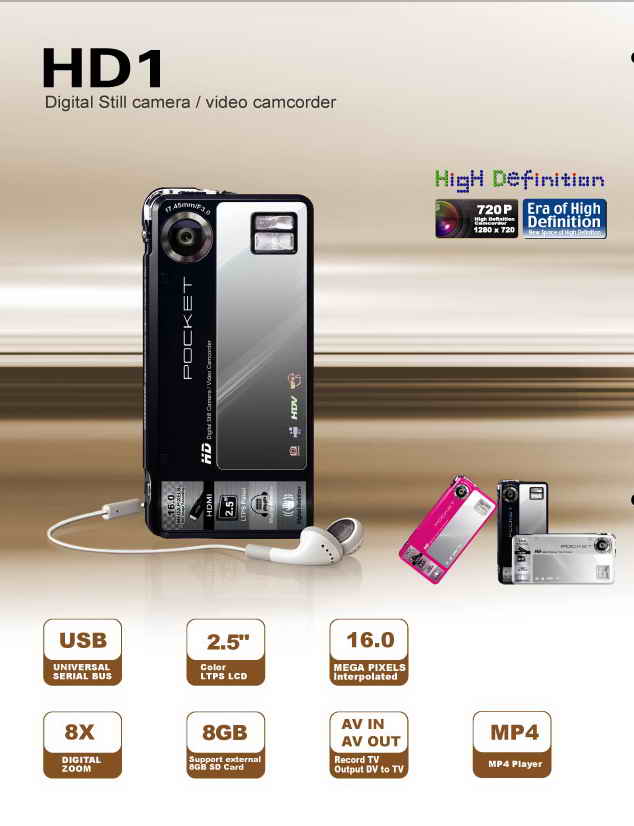 Camcorder Resolution HD(1280*720)/VGA(640*480)/QVGA(320*240)