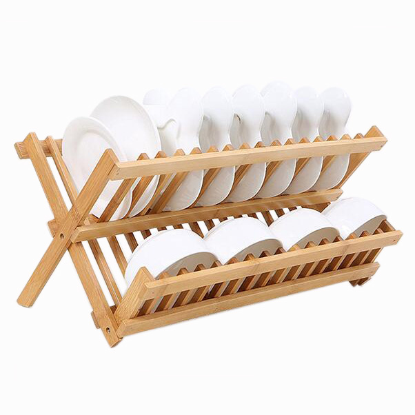 This bamboo dish drying rack accommodates full size plates It contains 16 slots that hold dinner plates upright. 100% bamboo material which is a renewable resource that makes a great altern…