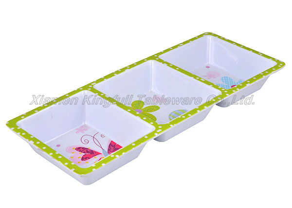 Model Number: B321302 Name: Melamine Plate Set License Plates Chip And Dip Tray Specification: B321302,13" Chip And Dip Three Sections Pla…