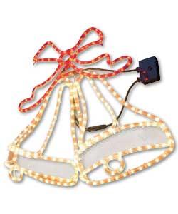 • Outdoor 3D double bell with bow rope light silhouette gives the effect of a tolling bell.