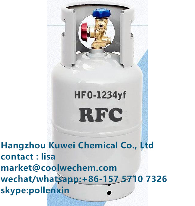 R1234YF gas in 5 kg cylinder certified T-PED / EN 13322-1. new generation ecological gas, ideal for recharging air conditioners / air conditioners in new cars (W21.8 ”x 1/14” valve) UN 3161THE RECHARG…