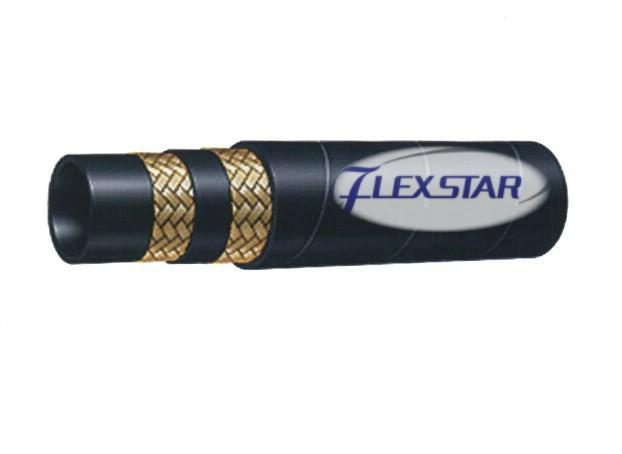 This hose consists of an inner tube of oil-resistant synthetic rubber, two wire braid reinforcement, and an oil- and weather-resistant synthetic rubber cover.