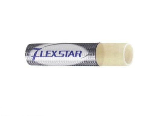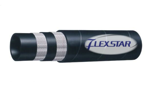 This hose consists of an inner tube of oil-resistant synthetic rubber, two fiber braids reinforcement, and an oil- and weather-resistant synthetic rubber cover.