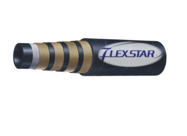 This hose consists of an inner tube of oil-resistant synthetic rubber, a single wire braid reinforcement, and an oil- and weather-resistant synthetic rubber cover.