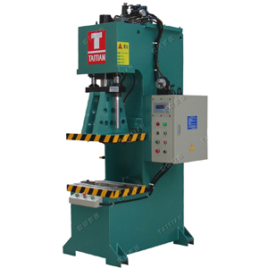 1.This hydraulic press is of C-type with all parts installed inside machine body. It’s easy to operate, and the operator’s safety is fully assured.