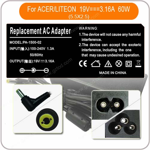 Universal laptop ac adapter supplier ACER LITEON3.16A