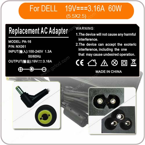 Universal laptop ac adapter supplier DELL3.16A