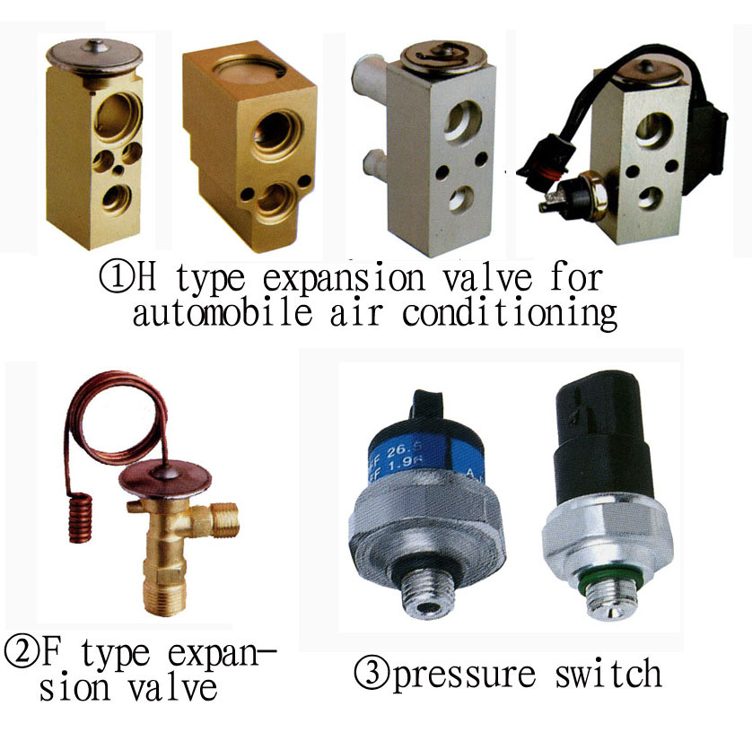 what we sell the spare parts for for automobile (vehicle) air conditionings, include H type thermal expansion valve, F type thermal expansion valve, drier-accumulators, pressure switch, etc