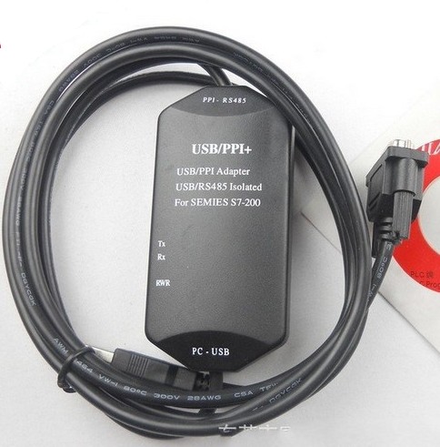 USB-PPI USB interface Siemens S7-200 PLC programming cable with indicator light, support WIN7, 9-pin male, support baud have 9.6KBD / S, 19.2KBD / S; maximum not exceeding 115KBD / S.