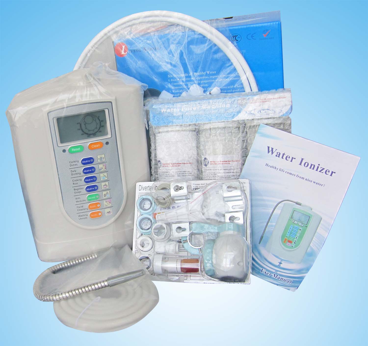 * Four levels of alkaline water, one level of acid water and purified water