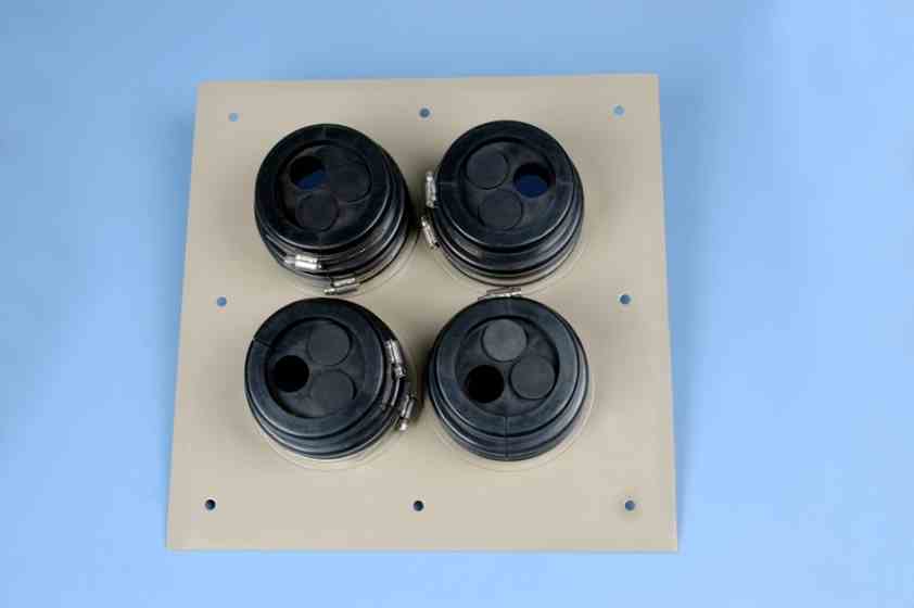 hoop type, Item name : cable entry (wall entry ),Product class : hoop type , 4*3 holes,Materials : entry plate is made of aluminium . boot is made of black rubber .Plate size : 400*400*2 Matching cabl…