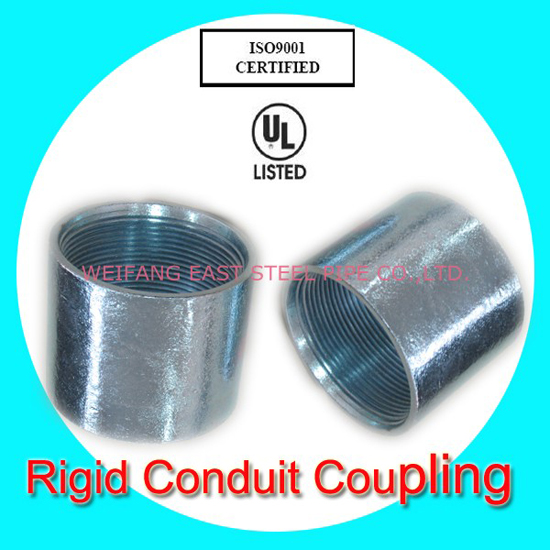 Coupling is manufactured from seamless steel pipe, and produced according to the standard of ANSI C80.1(UL6). We can produce hot-dipped galvanized at external surface and electro-galvanized at interna…