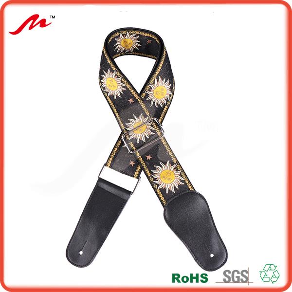 2 1/2" Sun Design jacquard weave gutar strap with garment leather back with leather ends and tri-glide adjustment,Jacquard Woven Giuitar Strap url:http://www.meiledimusic.com
